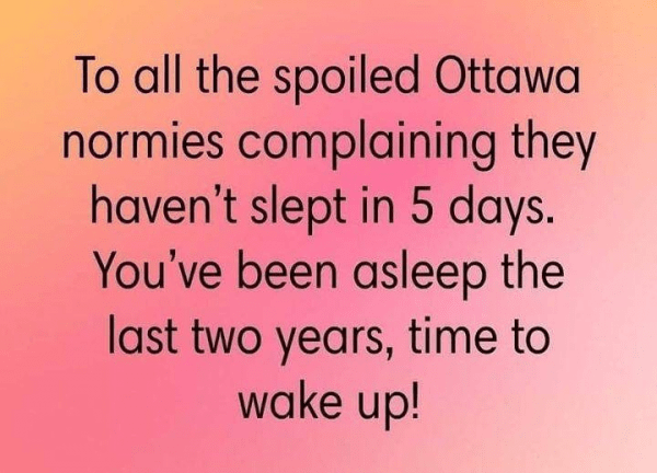 Trudeau has called in favours from all his fellow assets in the provincial and municipal governments. All this shows is the depth of the corruption in Canada. It has seeped down to the local level and has even divided families in their homes. I go to Twitter and see there numerous Tweets from partners in marriages driven asunder by the vaxxxZination mandates. I saw where a husband told his wife she was the “only one” he knew who was unvaxxxZinated and, because of that, he thought she was “stupid”. This lack of understanding and flexibility is not the exception in divided families, it is the rule. I know for a personal fact that the vaxxxZinated do not care a whit about the fact that we unvaxxxZinated are denied the most fundamental rights of mobility and inclusion. THEY ABSOLUTELY DO NOT CARE! Why is this? It is because the leaders for two years now have driven home the message that we are to be isolated and shunned. Now, just yesterday, a vaxxxZinated person deliberately drove their vehicle into a freedom convoy demonstrator. Can we blame the terrorist PM for this kind of act?