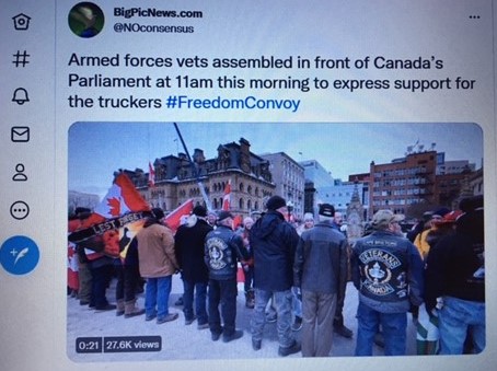UPDATE: Following Twitter today folks. Was booted off briefly this morning [as were other truthers] but back on now. Things are really heating up. Turvert is on TV blustering about severe consequences for the Trucker Convoys/Demonstrators. What’s really happening is that he’s pissing his pants because now the Canadian Armed Forces is coming out in favour of the Truckers…Turverts’ dancing wildly around trying to distract from this BOMB! Here is a screen shot from the Twitter video that’s causing Turvert to crap his pants! I cannot post the video for some “strange” reason: