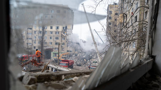 Emergency workers search the remains of a residential building in Dnepr, Ukraine. ©  Getty Images / Spencer Platt