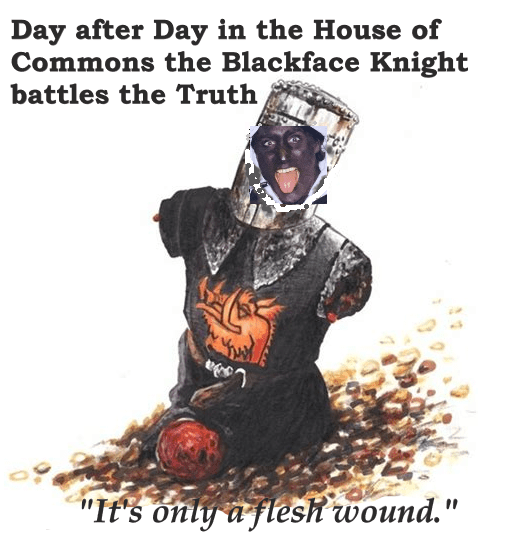 JFTrudeau’s conduct in the Cdn House of Commons during Question Period reminds me lately of the The Black Knight from the Monty Python movie