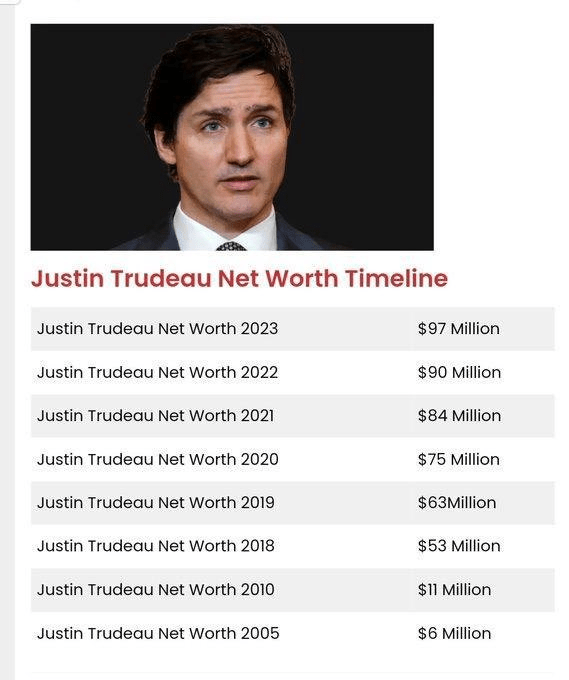 @JustinTrudeau Net Worth before PM – $10M