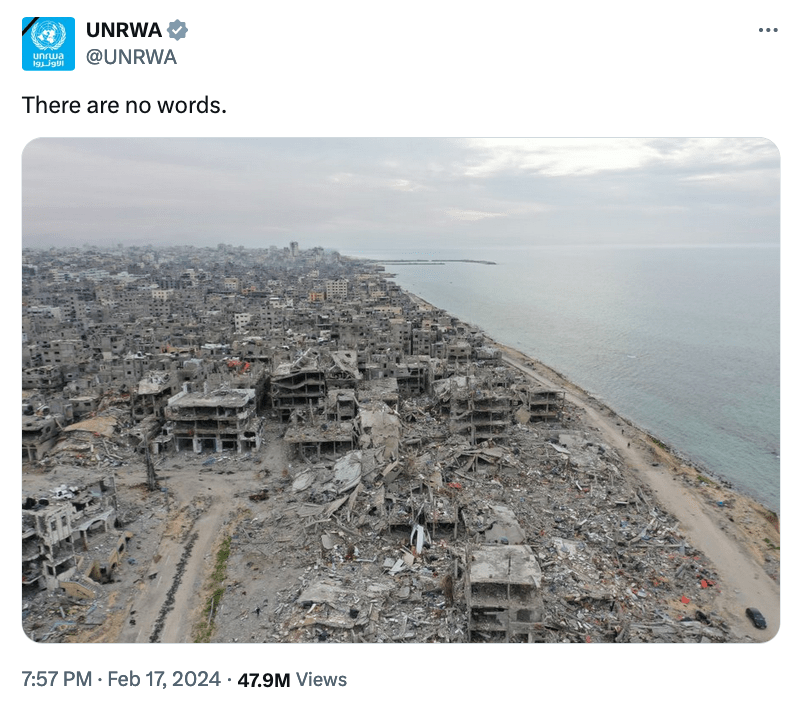 “There is no doubt about Israel’s intentional targeting of journalists in Gaza. In the case of Abdullah Al-Haj, photographer who took this incredible photo showing the scale of destruction of Gaza City: his house was bombed in a targeted drone strike a week after and had to have his legs amputated as a result of Israeli injuries.