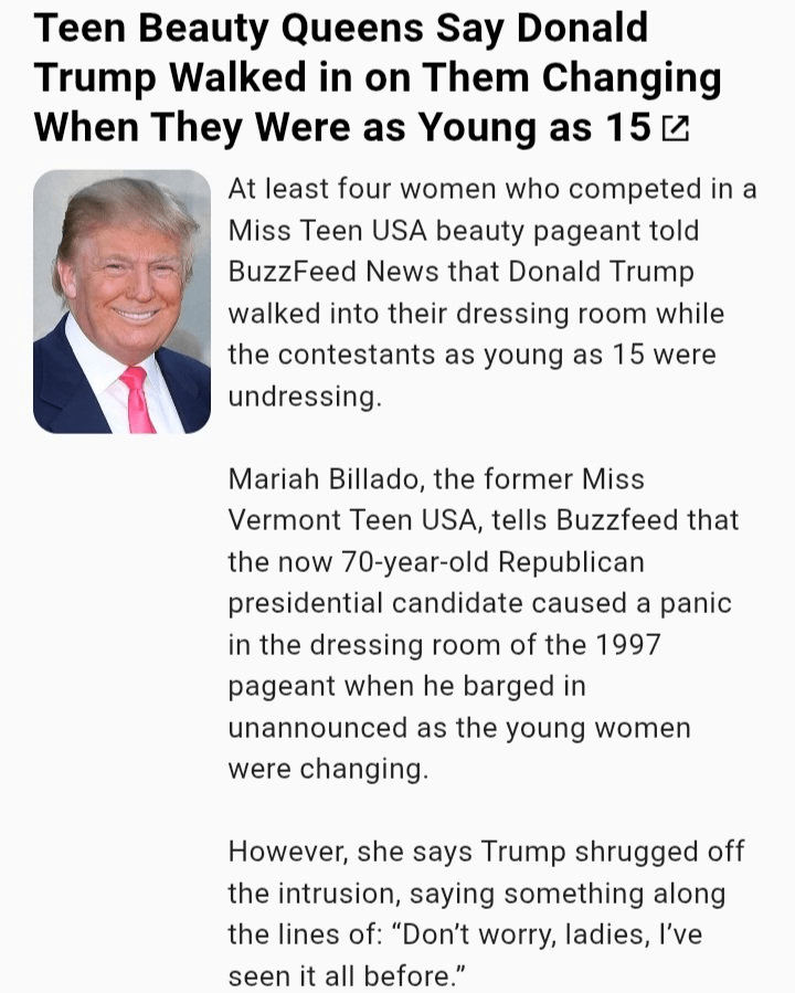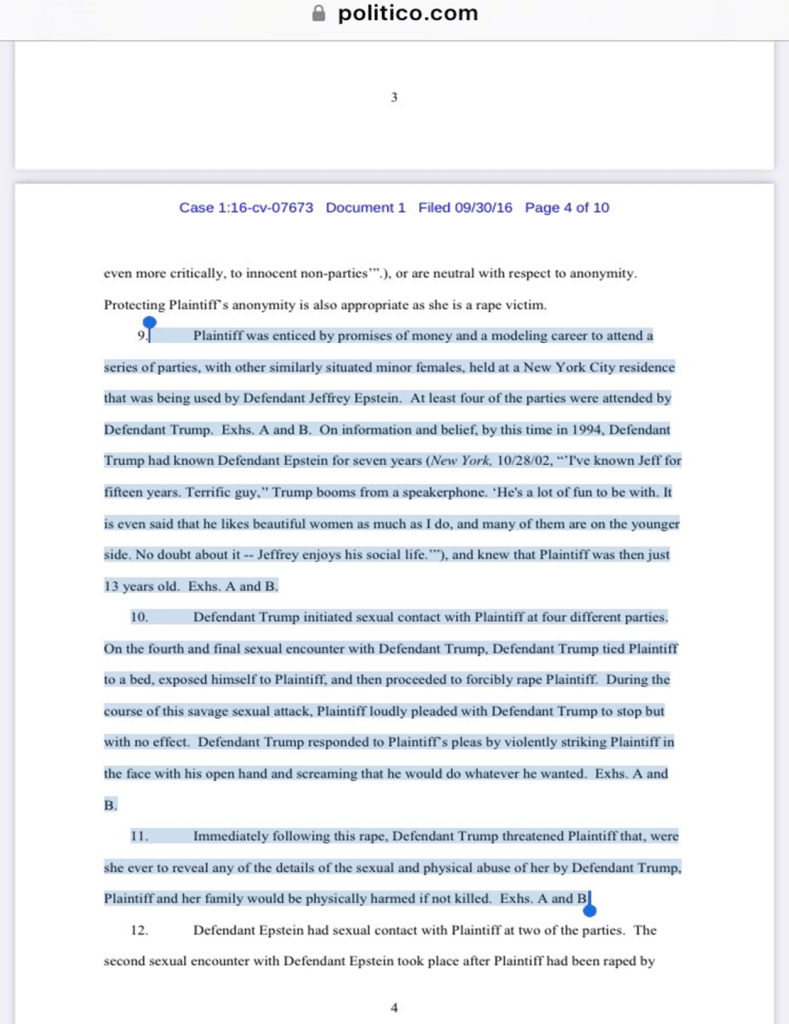 Trump and Epstein were charged with rape of a 13 year old — arguing over who would take her virginity. Can you even believe what you just read?!